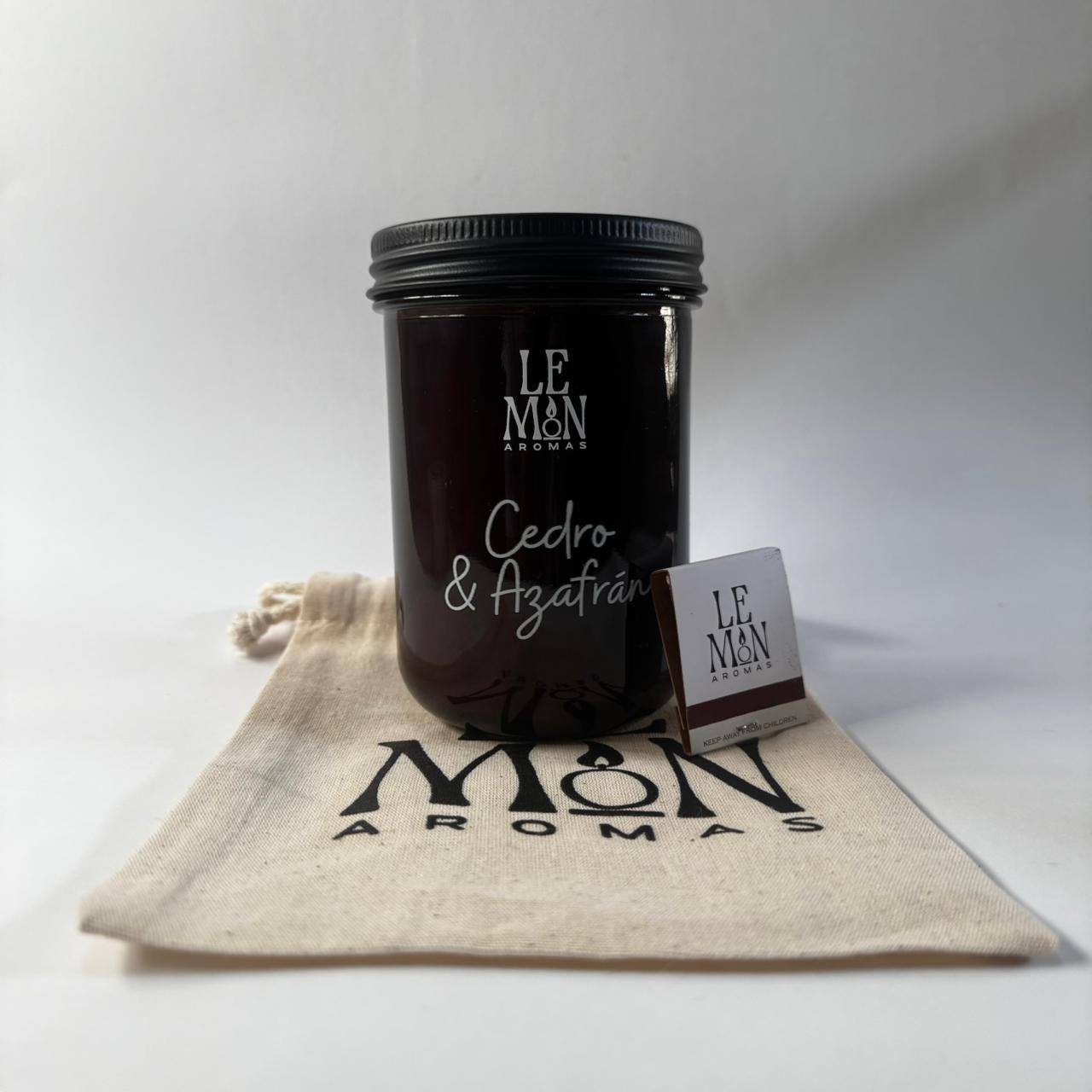 Vela aromática en envase de vidrio marrón y tapa metálica con nuestra combinación de ceras naturales de soya y coco, amigables con el medio ambiente y con tu salud.