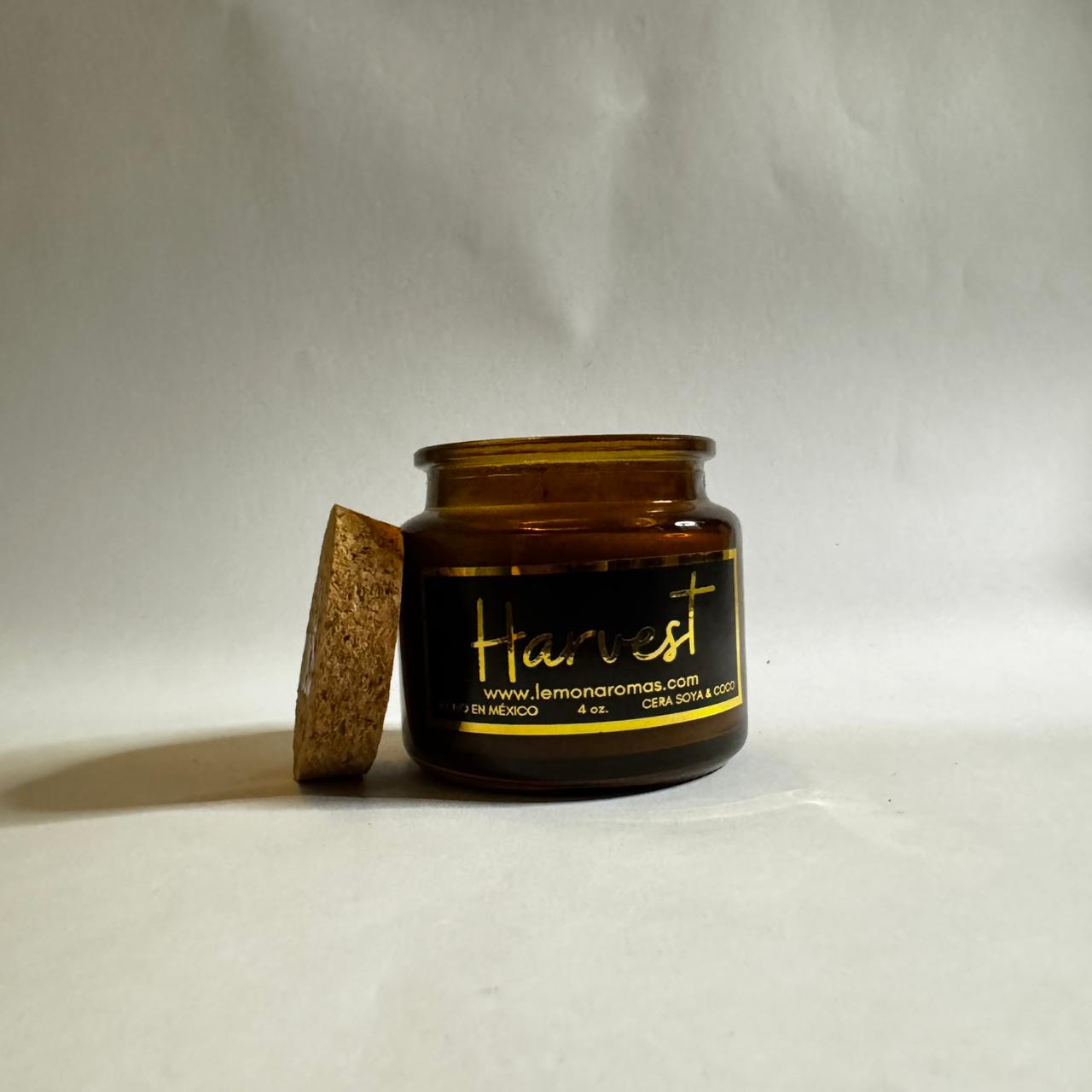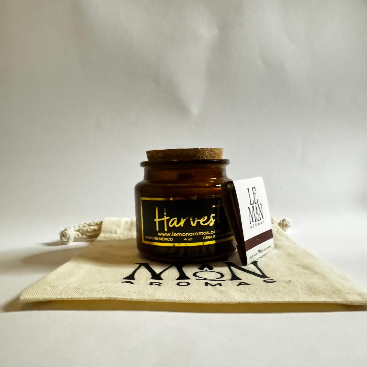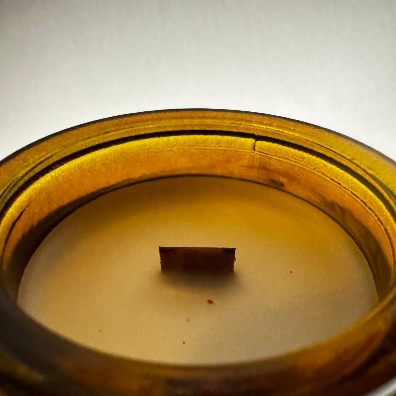 Vela aromática hecha a mano en un delicado envase de vidrio color marrón con nuestra combinación de ceras naturales de soya y coco, amigables con tu salud y el medio ambiente.